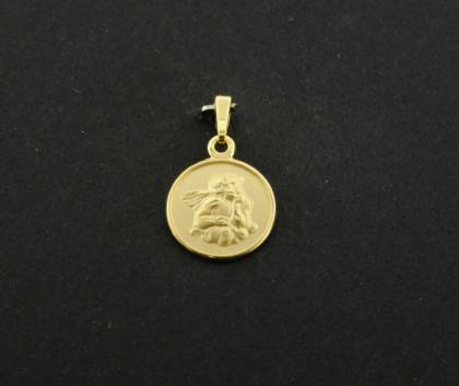 Ein kleiner Schutzengel als Anhänger in 333er Gelbgold. Auf der Rückseite der Platten findet sich die Gravur ""Gott schütze Dich"".