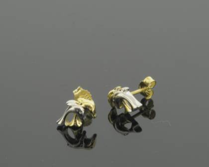 Niedliche Ohrstecker mit springenden Delfinen als Motiv. Je ein Delfin pro Stecker ist rhodiniert, so dass sich ein schöner Bicolor-Effekt ergibt.