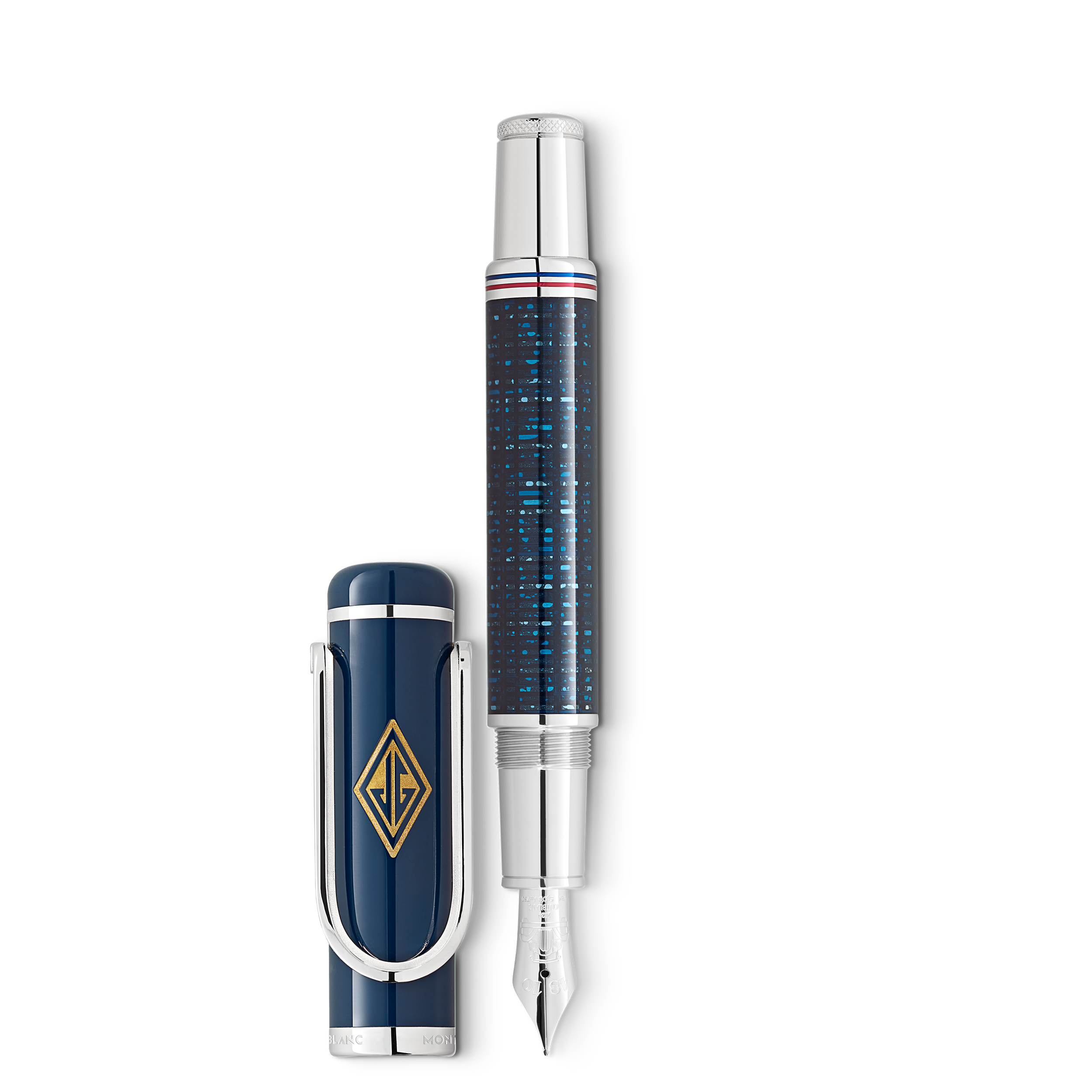 Einige Romane gehen in die Geschichte der Literatur ein und avancieren zu einem Symbol für eine ganze Epoche. Ein solches Juwel der modernen amerikanischen Literatur ist F. Scott Fitzgeralds „Der große Gatsby“. Der 1925 veröffentlichte Roman zeichnet das faszinierende Bild der verrückten Zwanzigerjahre und des Jazz-Zeitalters, einer Ära des neuen Wohlstands und der Maßlosigkeit. Vor dem Hintergrund der pulsierenden Metropole New York City, der großen Villen auf Long Island und glamouröser High-Society-Partys wird die Geschichte von Jay Gatsby erzählt, eines geheimnisvollen Millionärs, der nichts unversucht lässt, um seine verlorene Liebe Daisy Buchanan zurückzugewinnen. Das Design der Great Characters Hommage à The Great Gatsby Special Edition ist vom strahlenden New York der Gatsby-Zeit inspiriert, als leuchtende Art-déco-Wolkenkratzer in den blauen Abendhimmel ragten. Die Oberfläche des Korpus verweist auf ein frühes Schreibgerät von Montblanc aus der Zeit des Art déco. Sie wurde mit einer besonderen Technik hergestellt und scheint die hell erleuchteten hohen Fassaden der pulsierenden Großstadt in der Nacht zu reflektieren. Das fluoreszierende Montblanc Emblem im Kappenkopf ist kein fiktionales Element, sondern leuchtet wie das grüne Licht am Dock von Daisys Haus im Roman „Der große Gatsby“. Tagsüber fängt es das Licht ein und speichert es, um in der Dunkelheit zu leuchten. Die allgegenwärtige Macht des Geldes wird in dieser Edition vom platinierten Clip symbolisiert, der in Form einer Geldscheinklammer gehalten ist. Die runde Öffnung zeigt die Initialen von Jay Gatsby in Form eines rhomboidischen, vergoldeten Art-déco-Monogramms. Die Legende des amerikanischen Traums und das Design der häufig stilvollen Flachmänner des Art Déco werden vom Konus aufgegriffen, der den gravierten Schraubverschluss eines Flachmanns nachbildet sowie die feinen Ringe in den Farben der amerikanischen Flagge, die ihn umgeben. Beim Entfernen der Kappe dieser Edition offenbart sich die Quintessenz des wahrgewordenen amerikanischen Traums, wenn man einen Blick auf die handgefertigte Feder aus rhodiniertem massivem 585er Gold wirft. Sie ist mit einem Bild von Jay Gatsbys luxuriösem Auto verziert, das laut F. Scott Fitzgerald cremefarben, hell und mit Nickel versehen war und über ein Labyrinth aus Windschutzscheiben verfügte, die ein Dutzend Sonnen widerspiegelten.